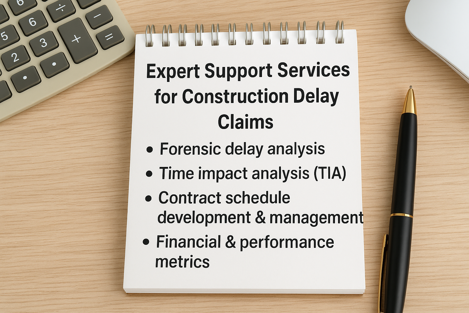 Support for Owners, Contractors and Engineers in preparing and assessing entitlement to construction delay claims.